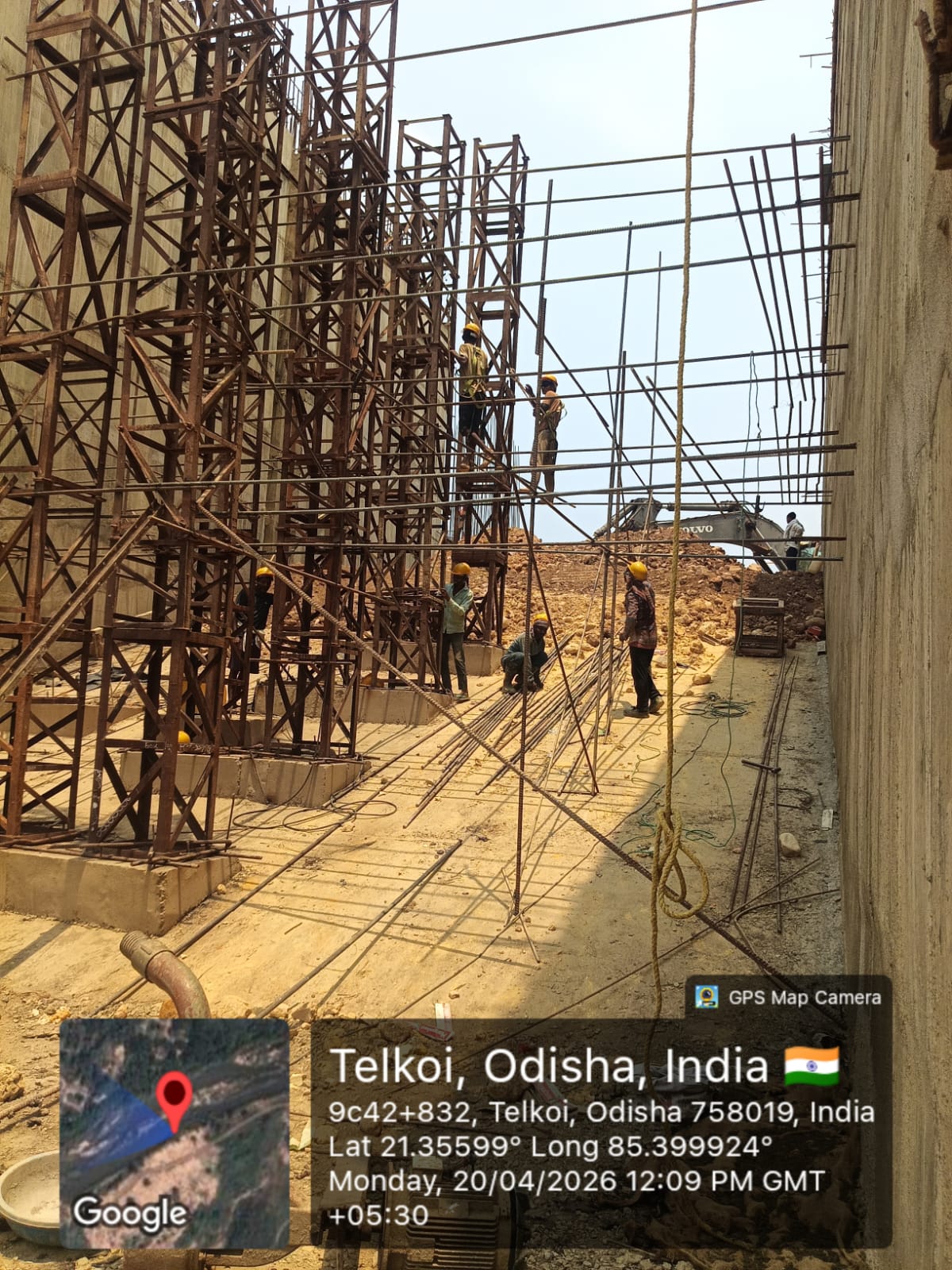 checked placing supporting bars and alignment of shuttering work in RHS U/S flared out profile 9th step RL- 214.700 to 215.300 Now the area is ready for concrete casting M20 A20. So recommended for the purpose. Approved by AEE sir SID Sambalpur in presence of JE