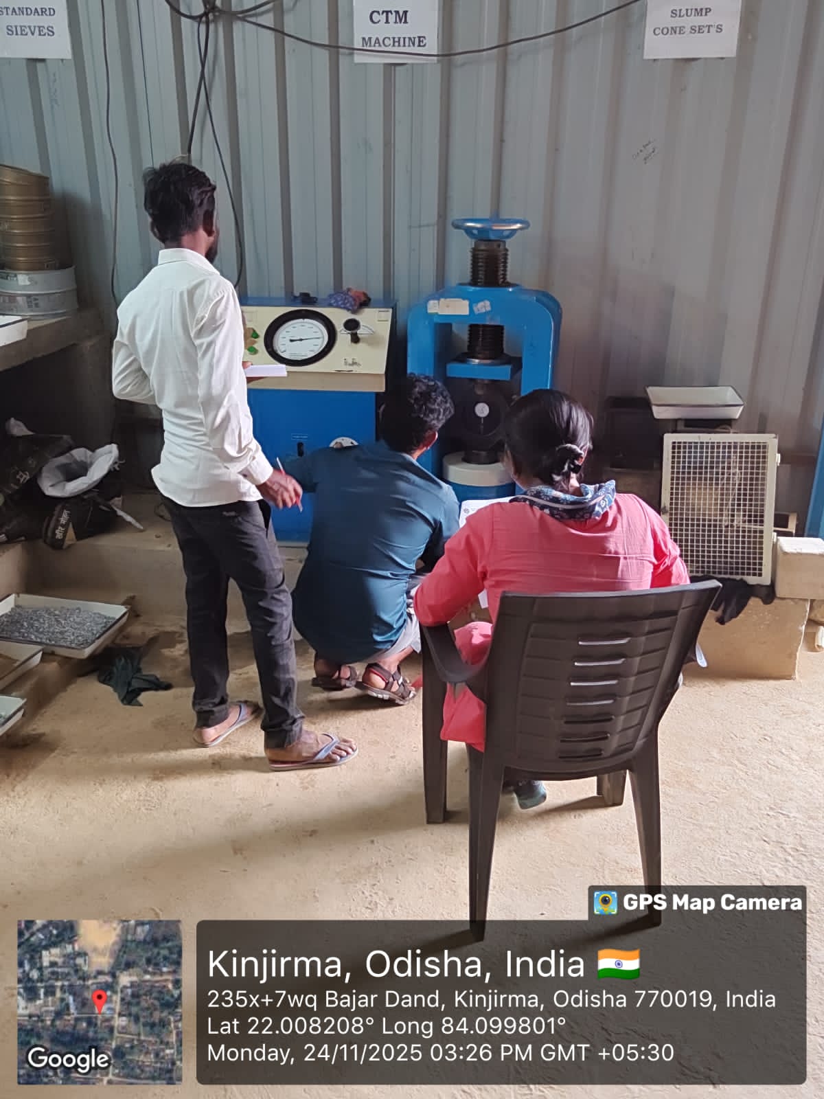 Gradation for coarse aggregates & fine aggregates conducted at site office in presence of Quality Control team, BBSR along with PSS Team, OCCL & the Agency.