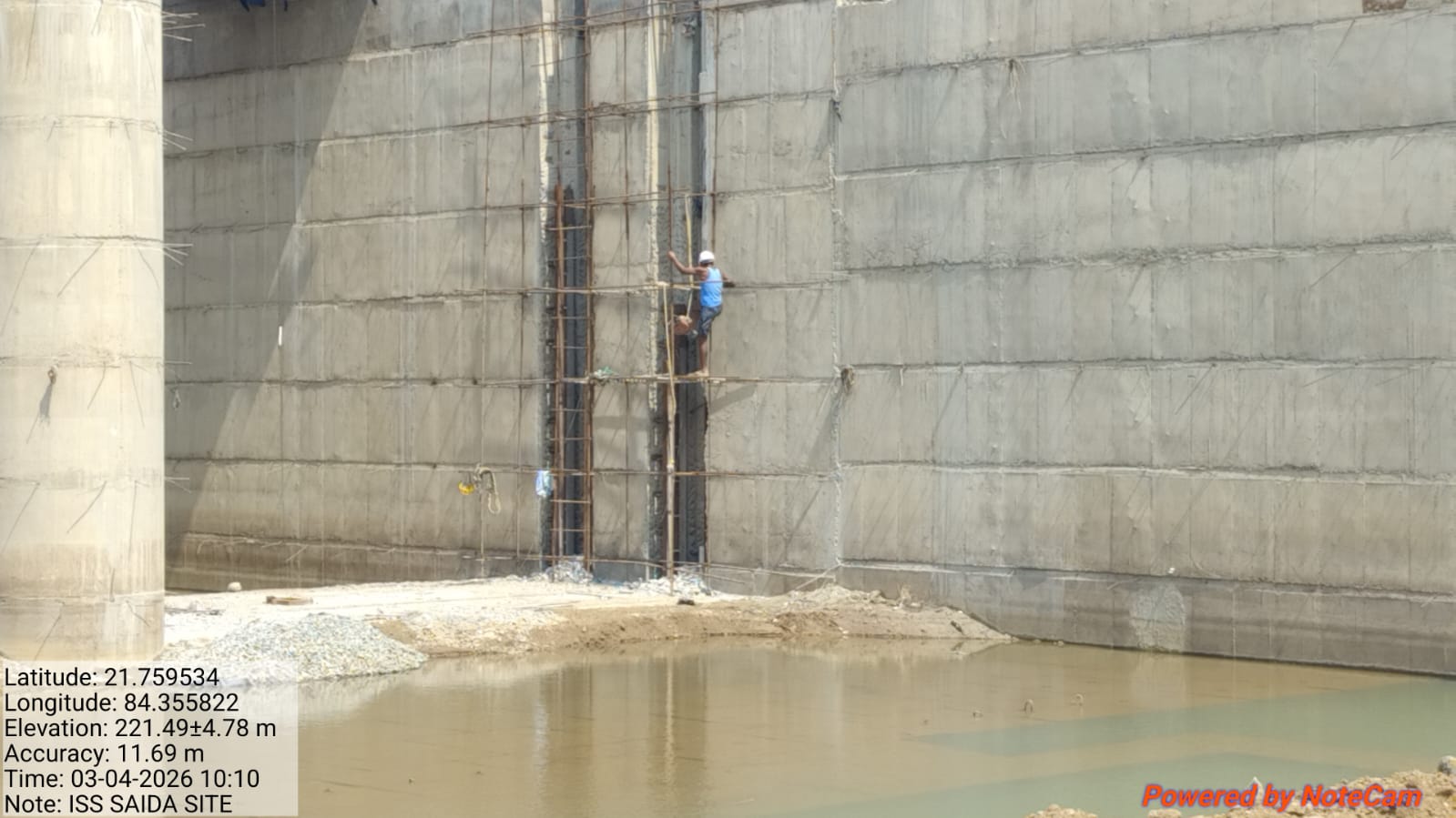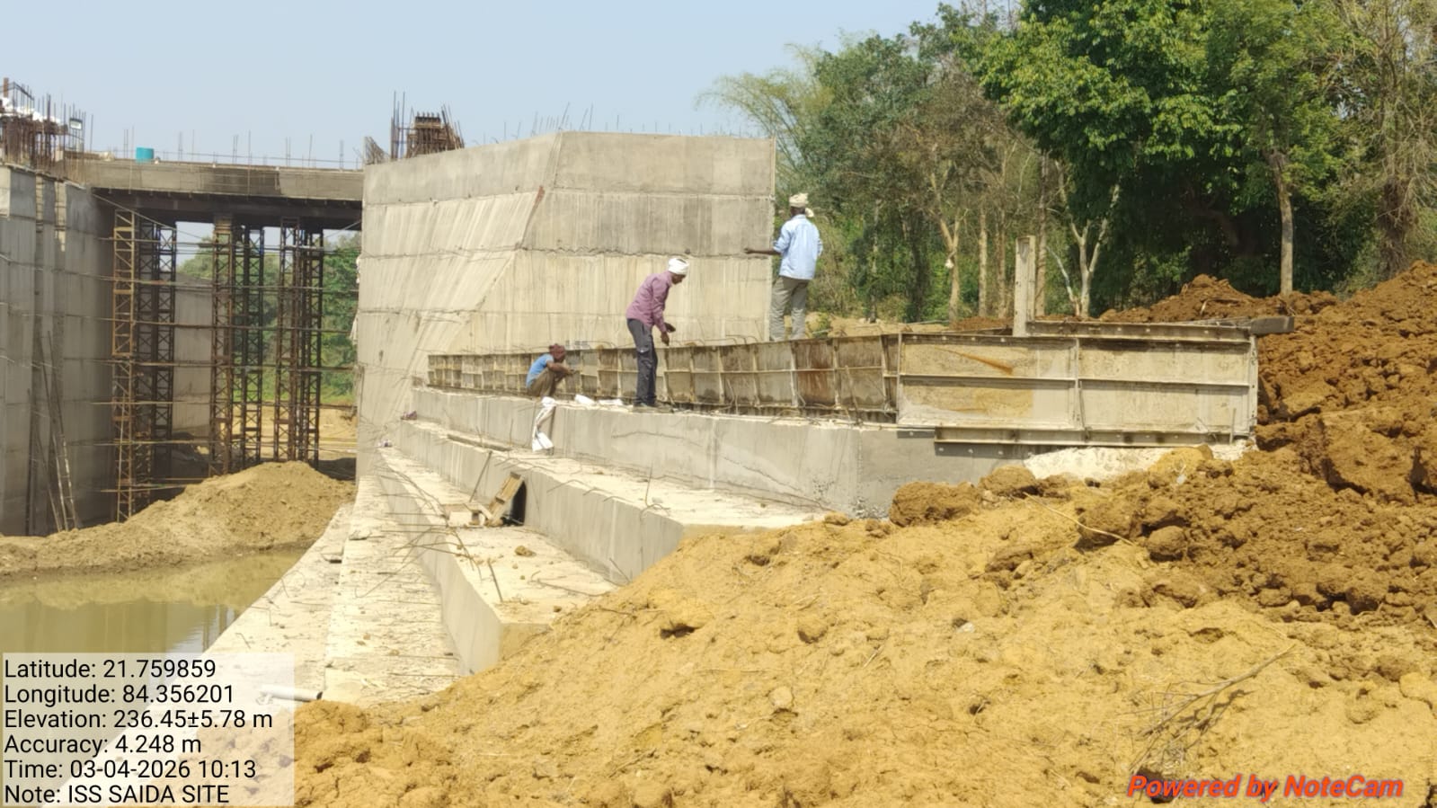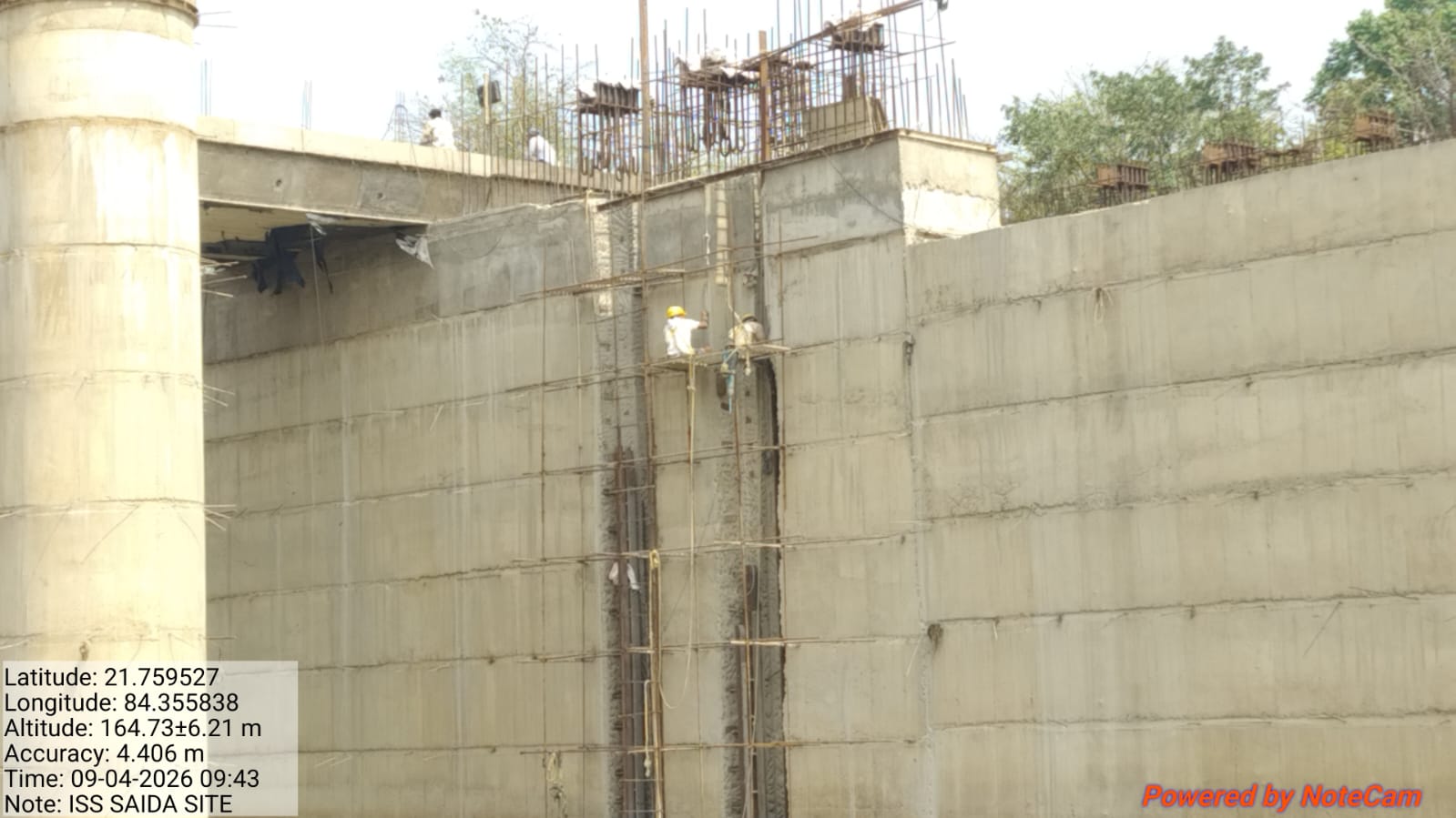 Visit of AEE, AE of Dept. and IRR. Eng. Exp. along with Site Engineers PMC to the ISS Site. Inspected the overall progress of site, RHS Pier No 8 Raft casting, Grabbing of panel number R 80, Excavation of foundation for pile cap of Pier number 9 and Right Pier number 7 3rd lift shuttering. Slump cone test conducted at site. Curing continuing at site. Cube cast at site.