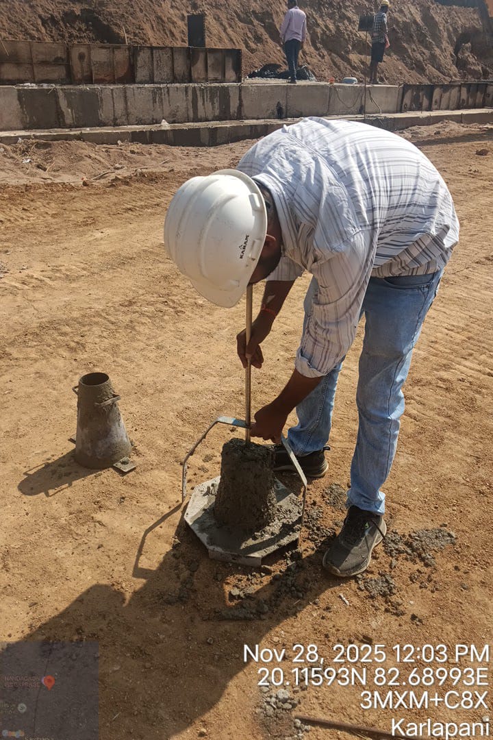 Slump test is in progress for internal approach RCC road concrete of Pump House.
