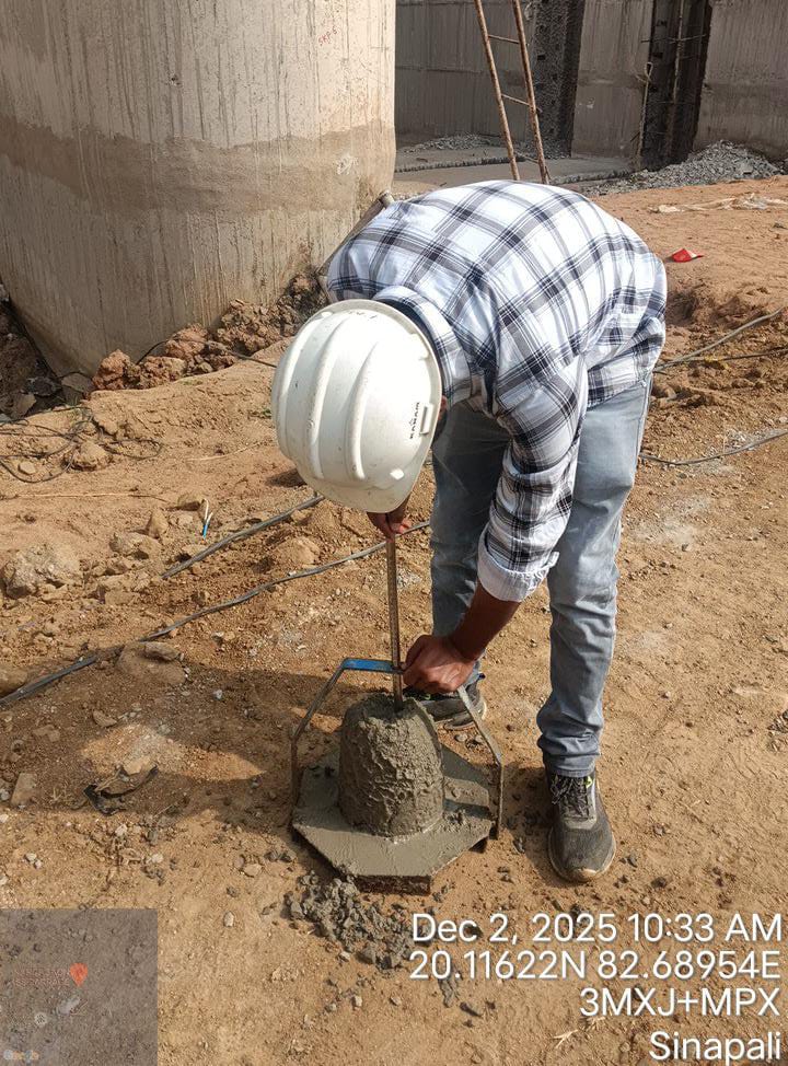 Cube casting & Slump testing M20A20 (Value 85 mm) of LHS Gravity floor PCC done in presence of Client & PSS Team.