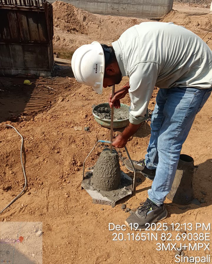 Slump test is in progress for drainage-2 wall concrete pouring at Pump House in presence of PMC team.