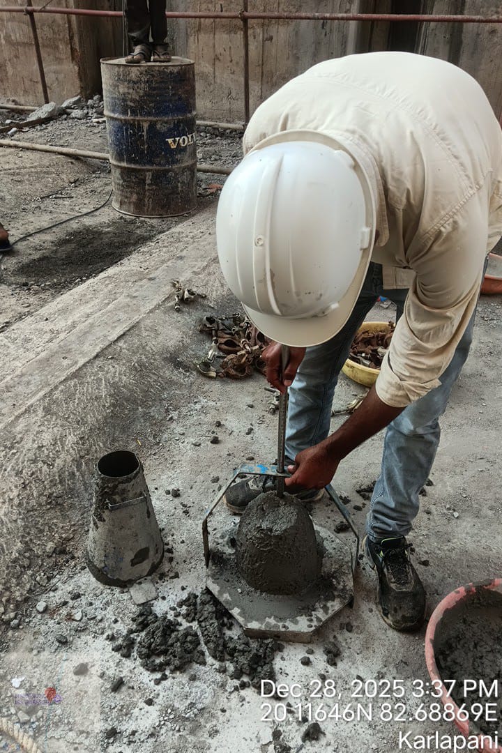Slump testing M20A40 (Value 65 mm) C.C Blocks done in presence of Client & PSS Team.