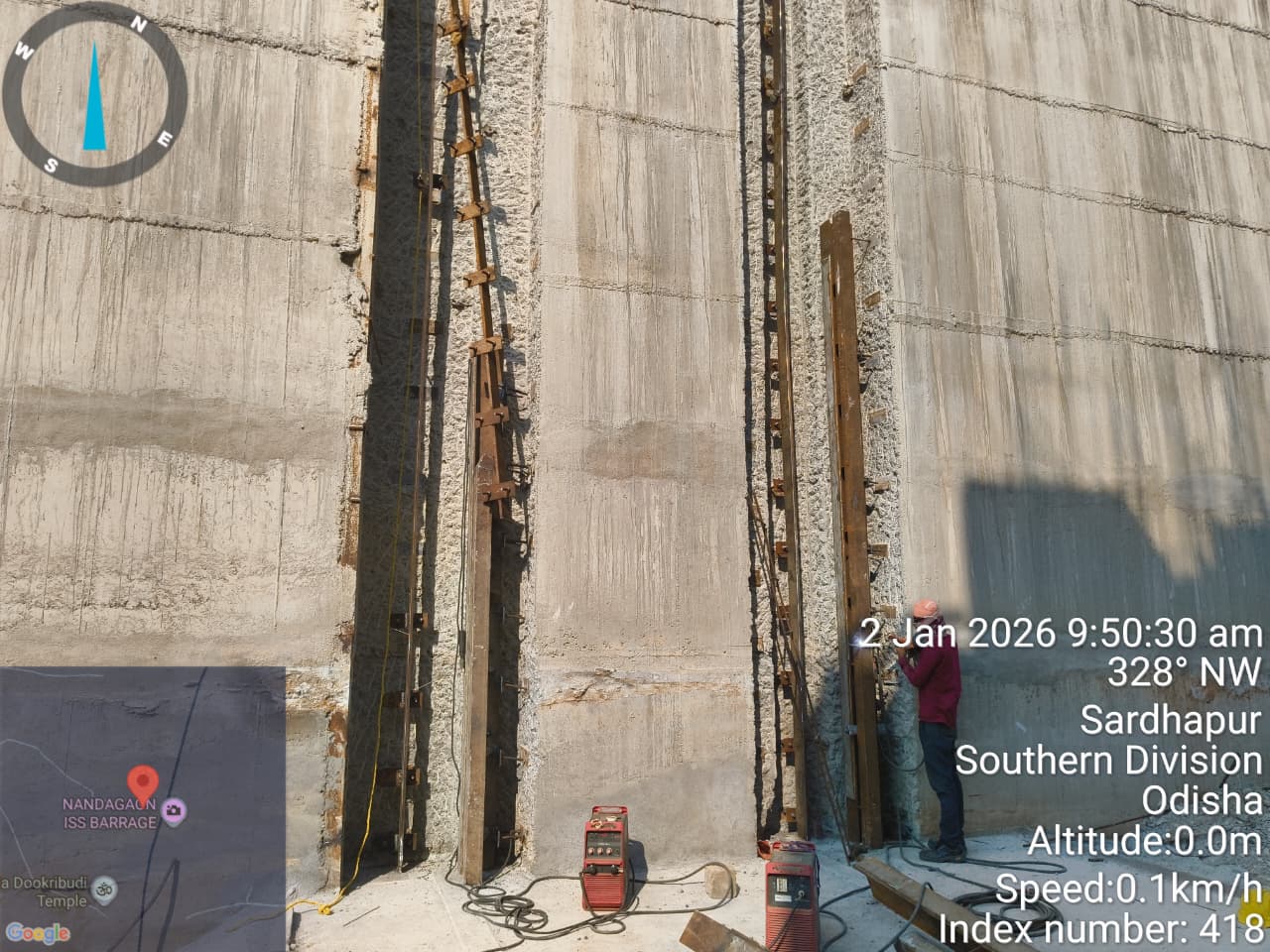 Gate no 8 barrage bay gate 2nd stage embedded parts erection work under progress on 06.01.2026