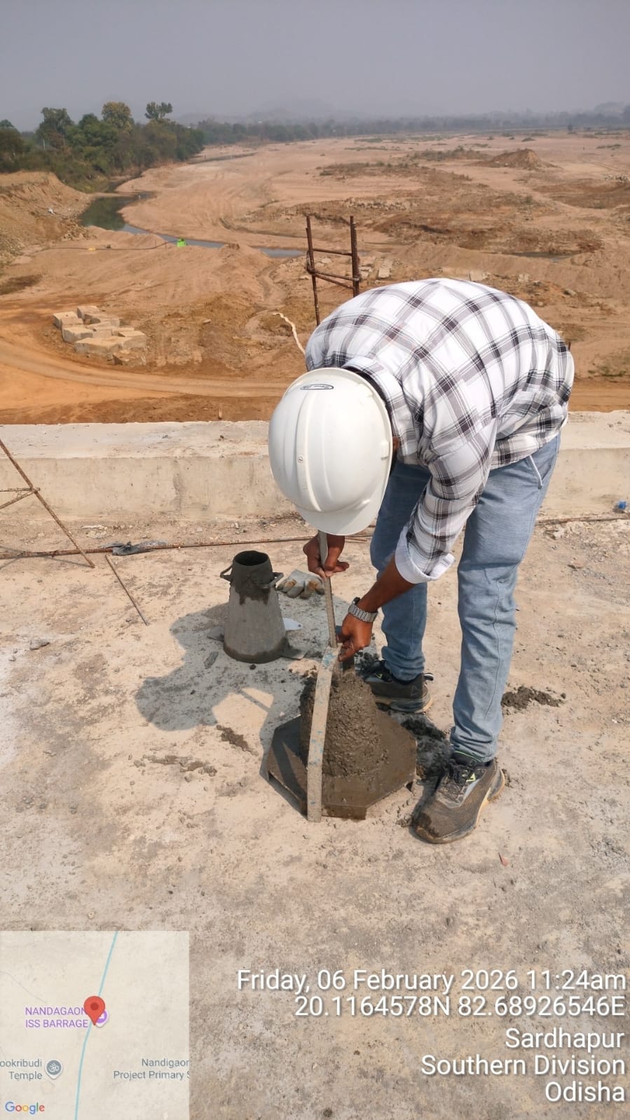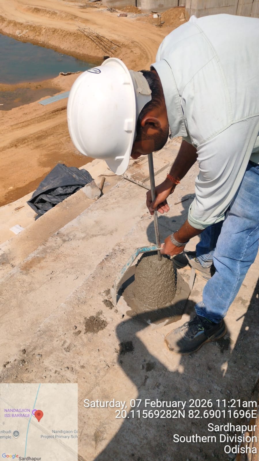 (iii).The area is cleaned properly through air water jetting and passed by SE, KID, Bhawanipatna for placing with RCC M35A20 grade on 06.02.2026