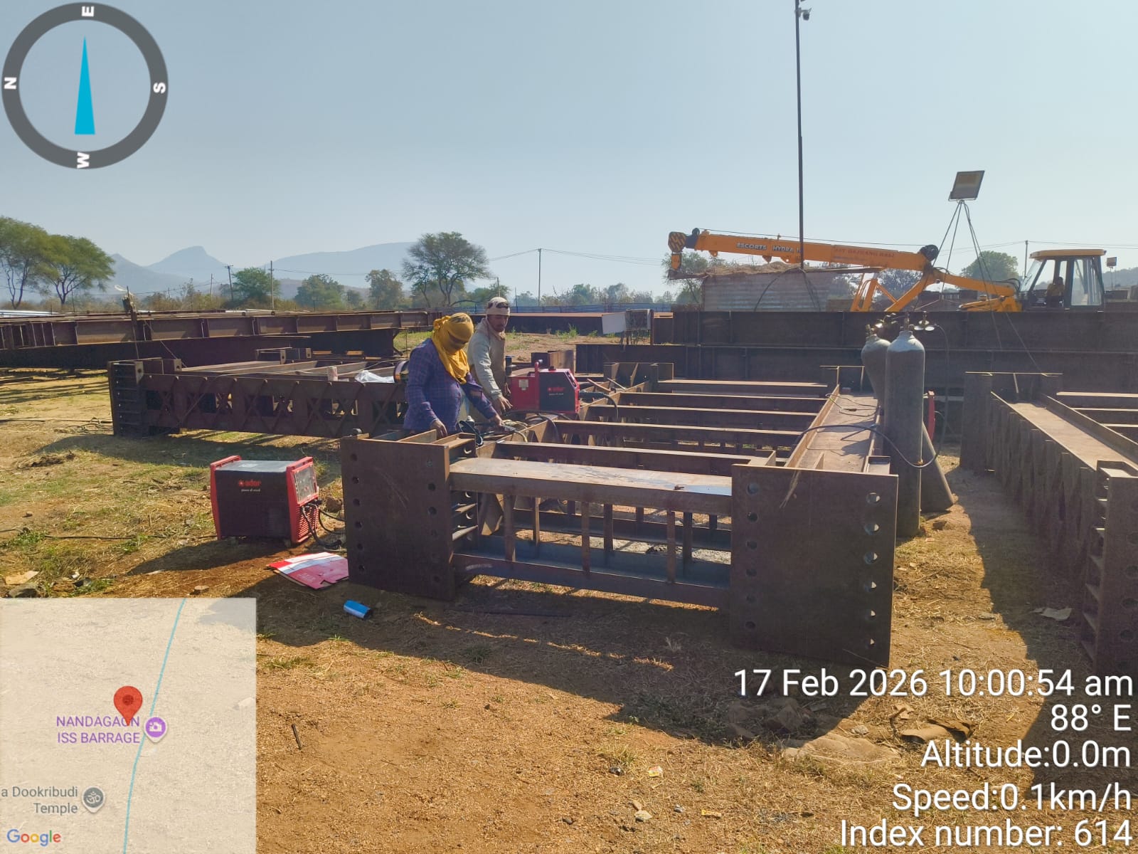 Sill beam installation work at under-sluice bay P 10 is under progress on 17.02.2026