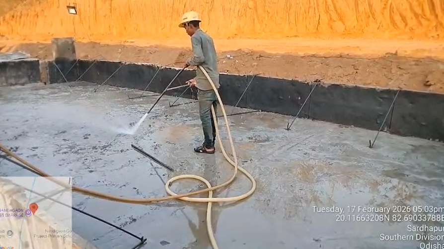 (iii) The concrete surface is cleaned properly through air water jetting and passed by SE, KID Bhawanipatna for placing concrete with PCC M15A20 grade on 18.02.2026