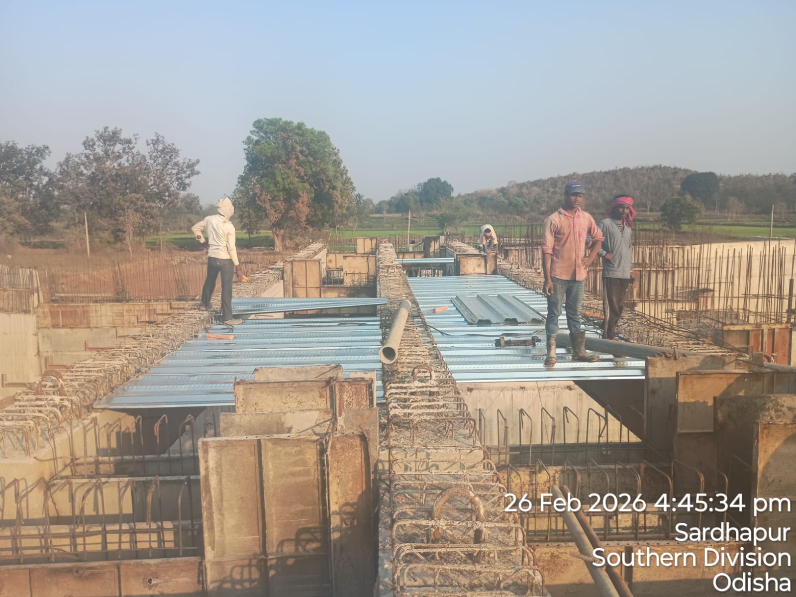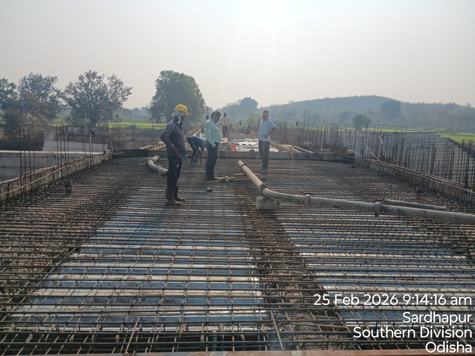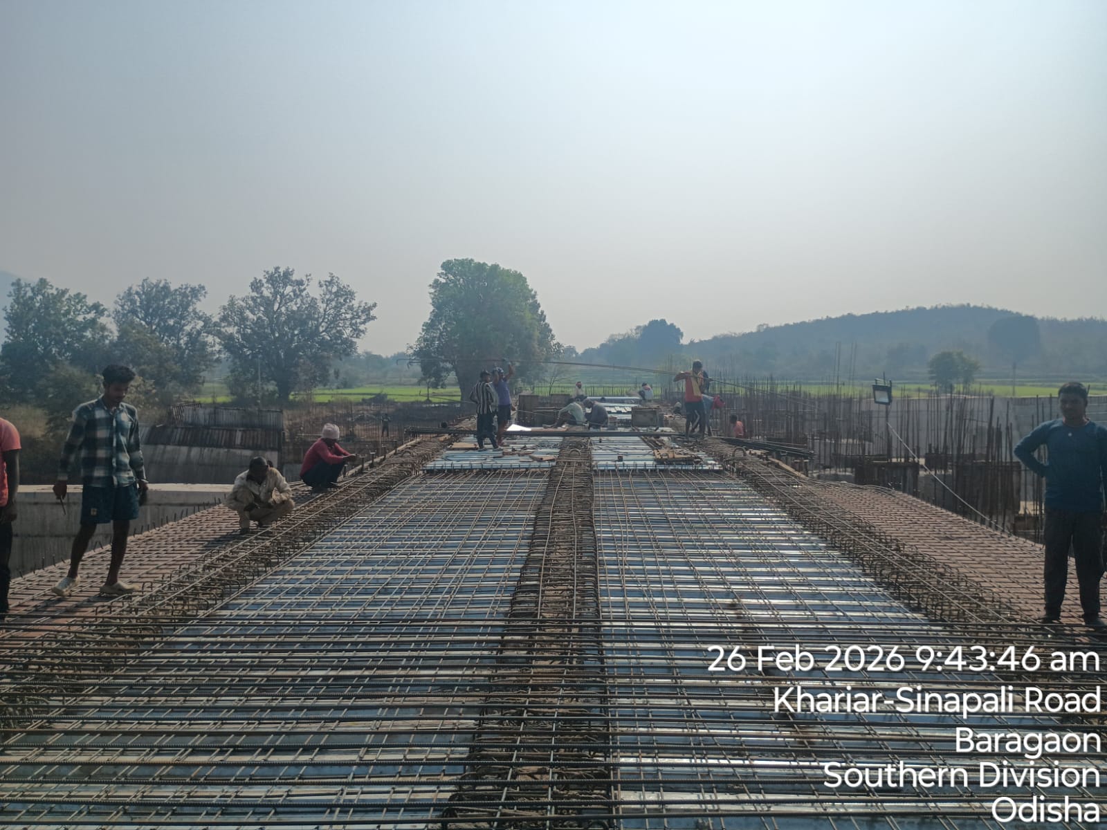 (iii) Fixing & placing of 8mm dia B-type mesh bars @ 2 layers at both end points of girder is completed. iv)The area is ready and passed by SE KID Bhawanipatna for placing with RCC M35A20 grade on 26.02.2026