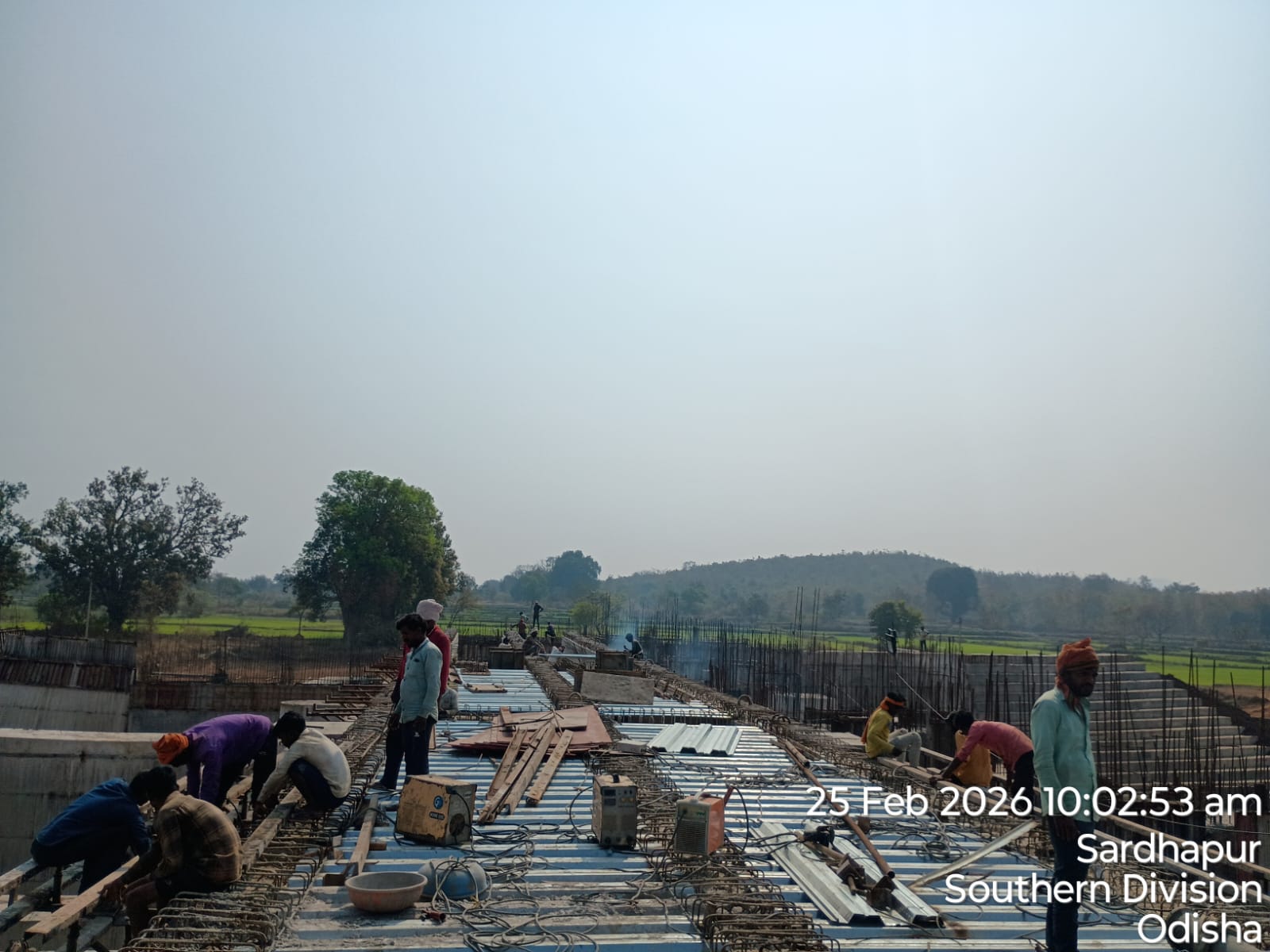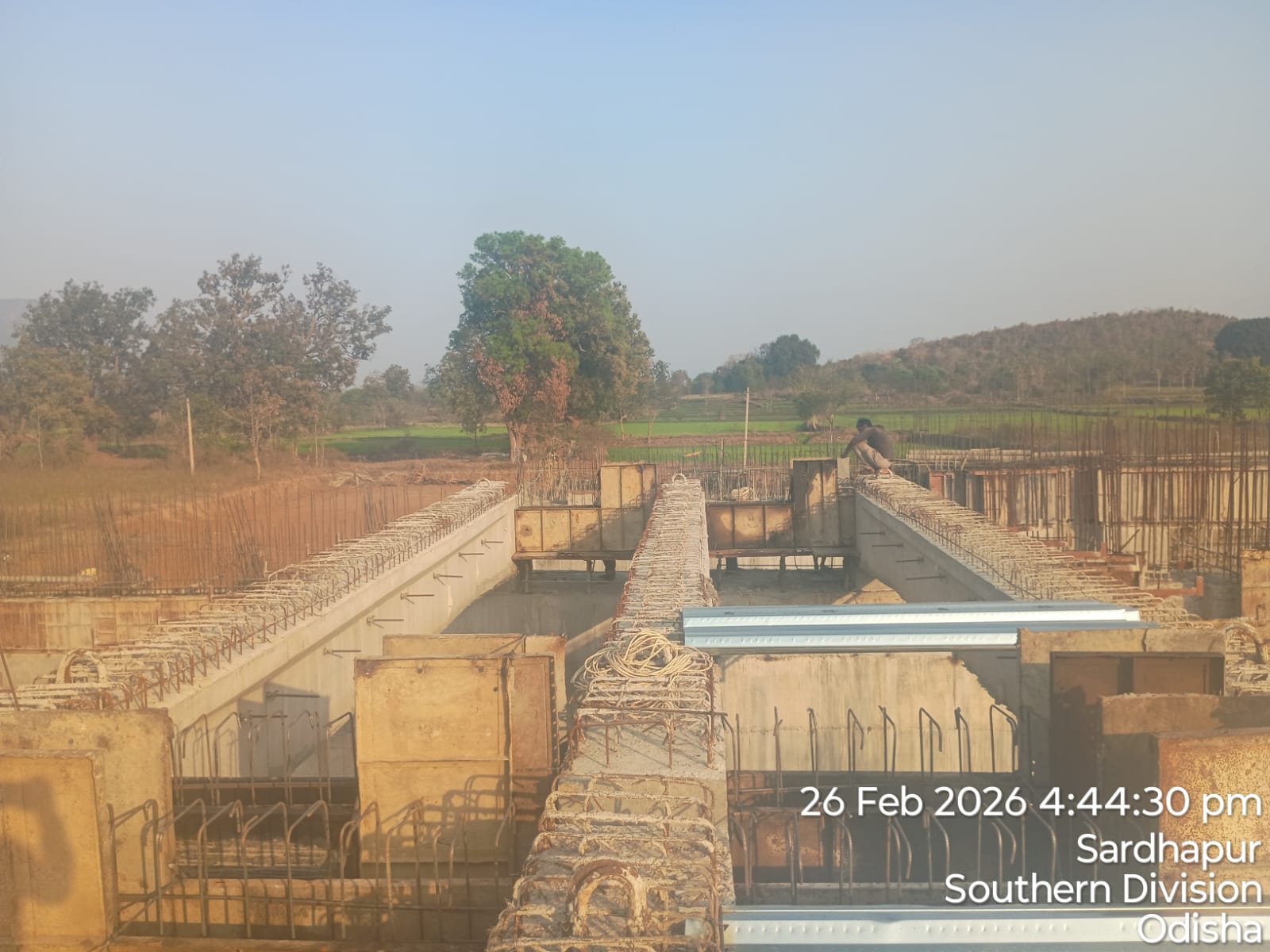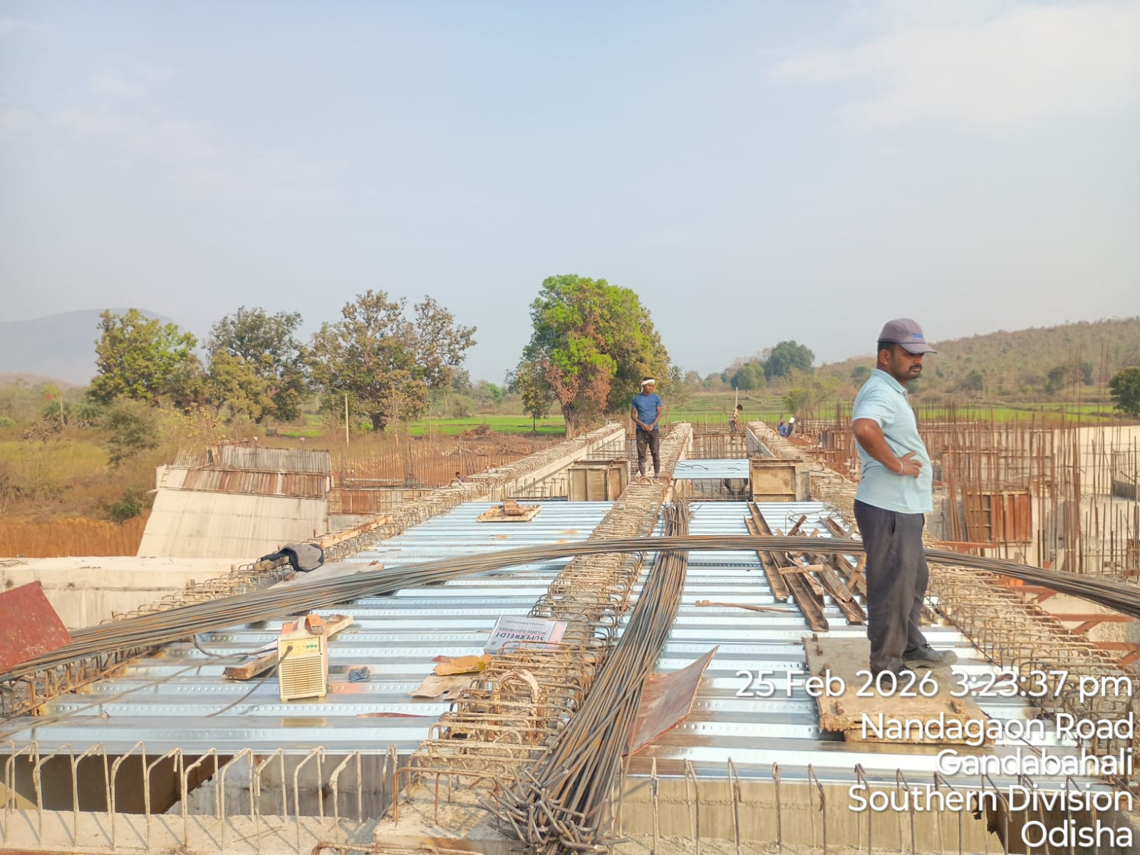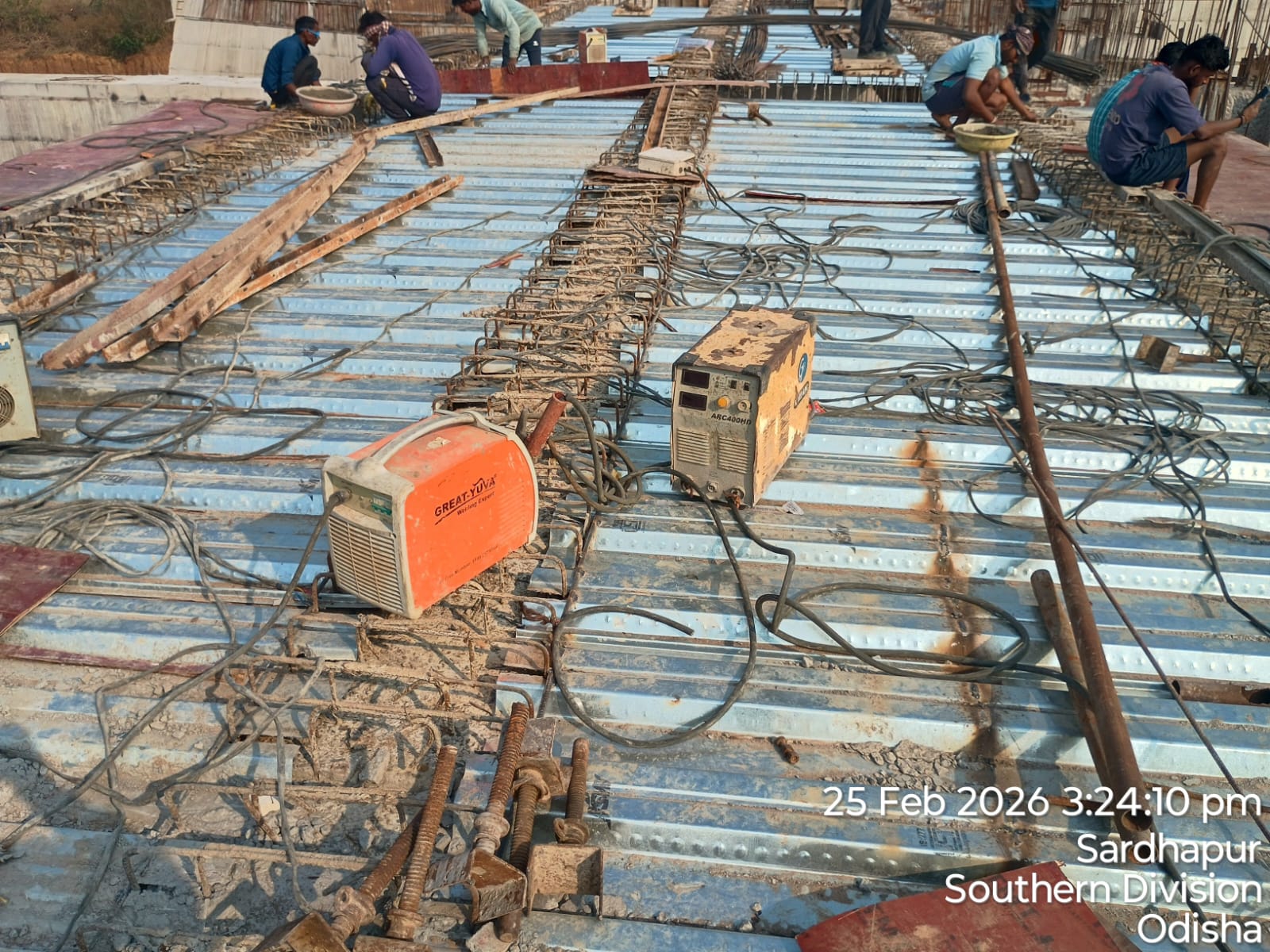 (iii) Fixing & placing of 8mm dia B-type mesh bars @ 2 layers at both end points of girder is completed. iv)The area is ready and passed by SE KID Bhawanipatna for placing with RCC M35A20 grade on 26.02.2026