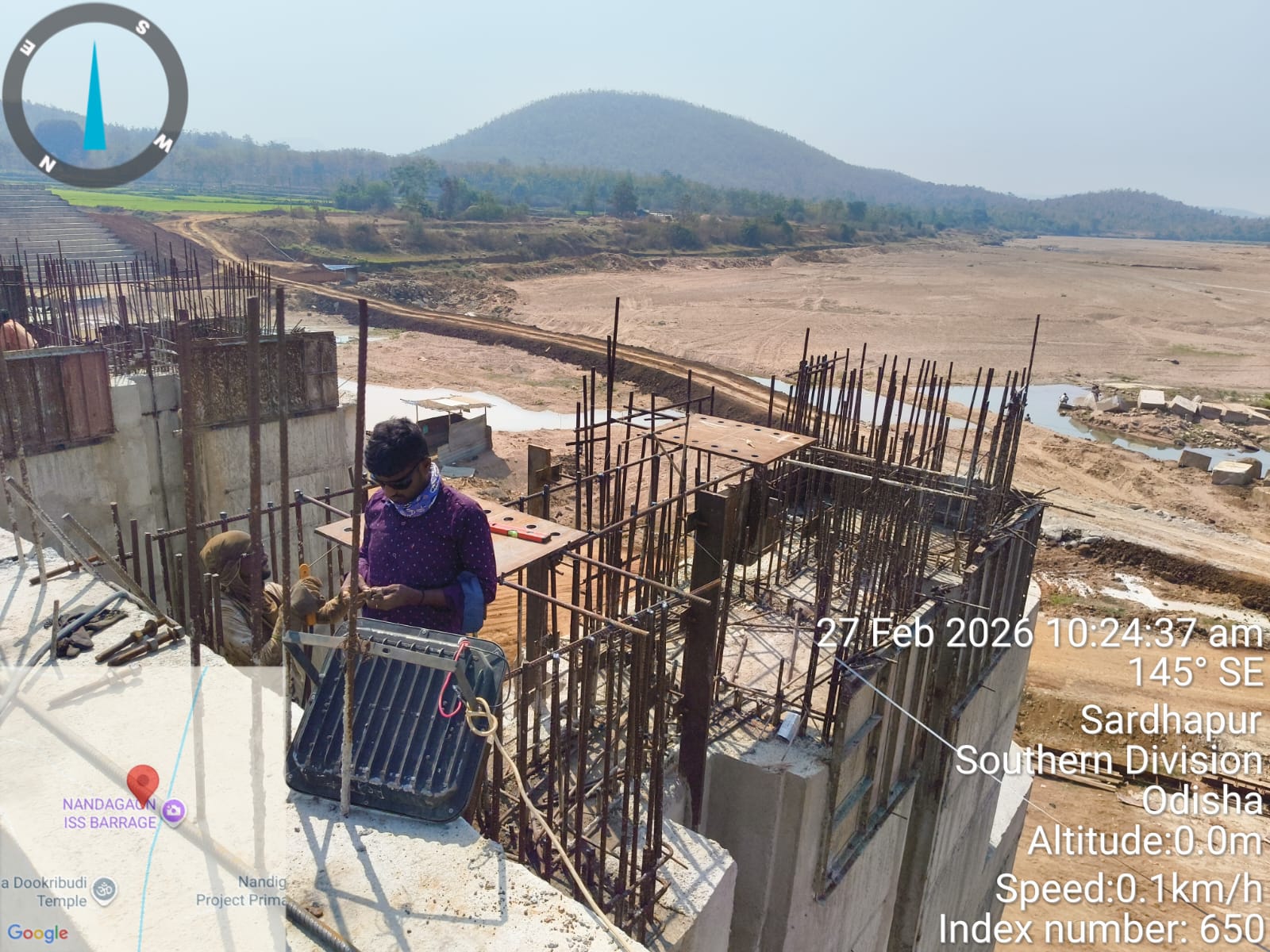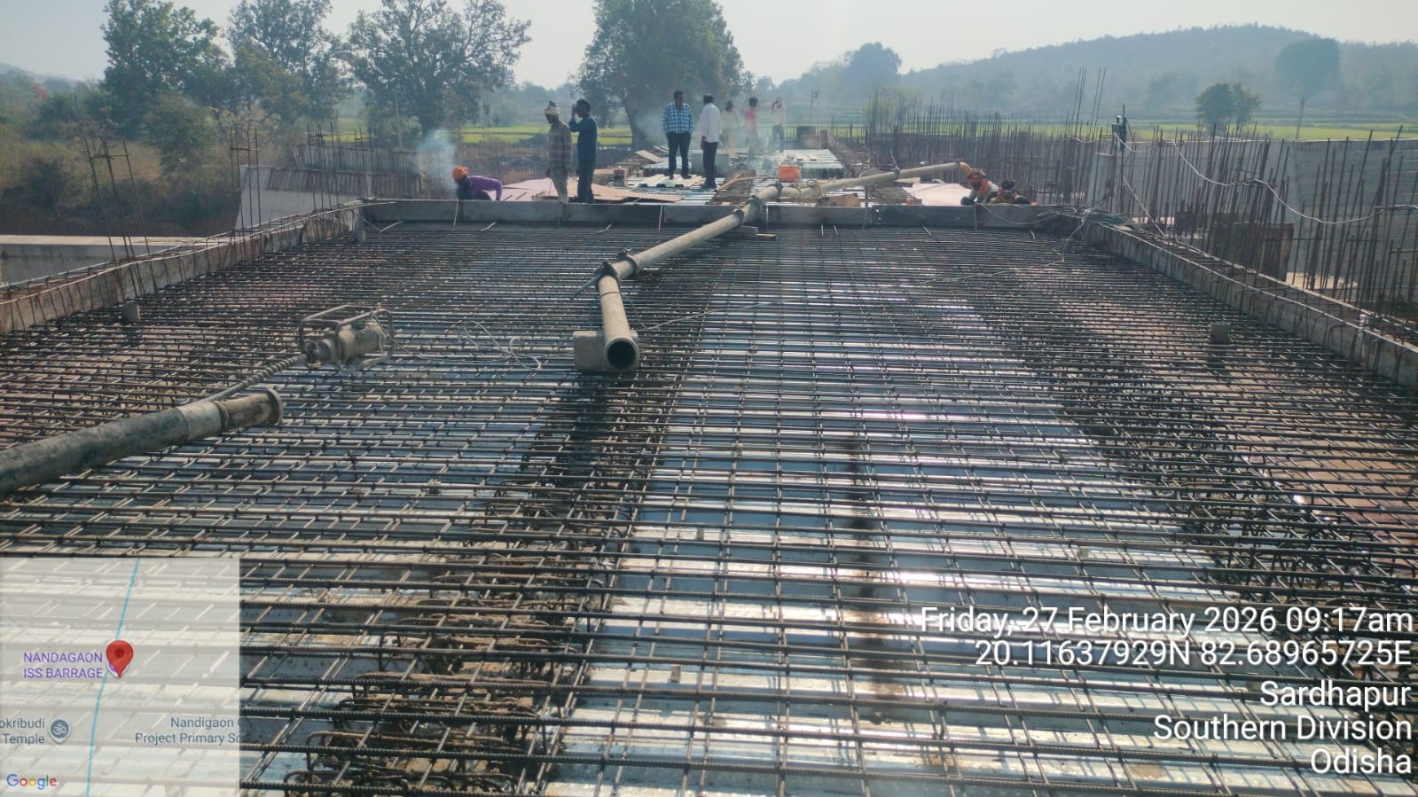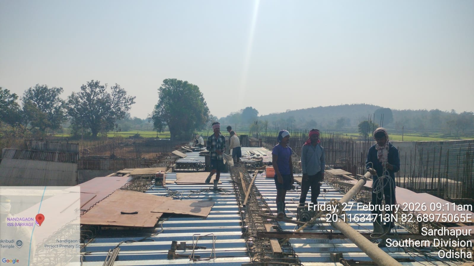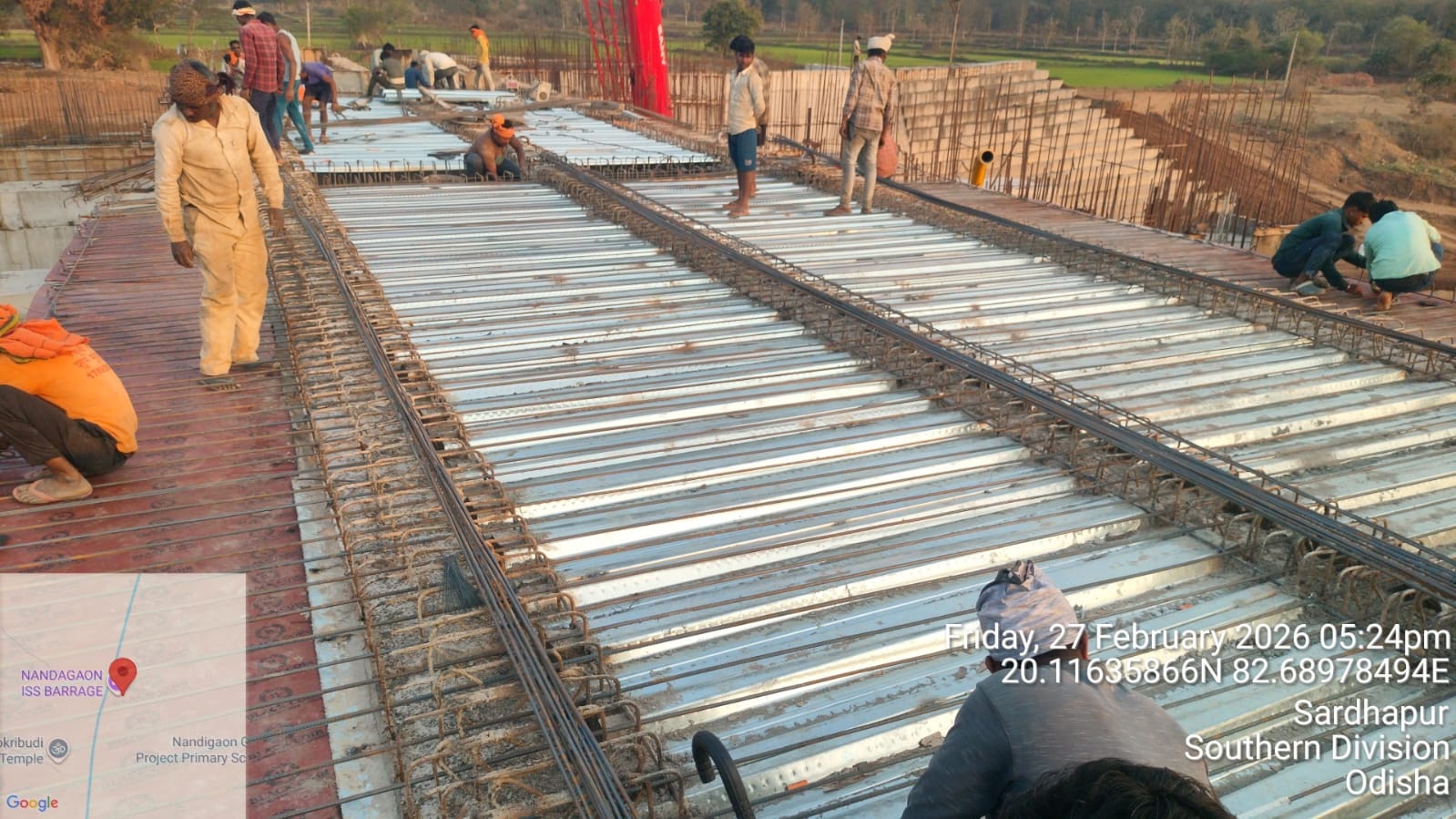 • 1). Site visit of ISS Nandagaon by DTL,Tel basin, Bhawanipatna along with QAC Expert, SDO, ISS, Nandagaon in presence of PM of EPC Agency, Site Engineers of PMC and site Engineer of EPC Agency, ISS Nandagaon. Found the area in binding, placing of reinforcements works including shuttering at RCC Deck slab of span-10 (bay-10) of Block-2 are completed as follows