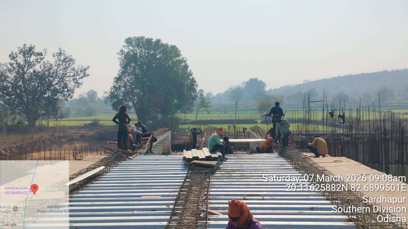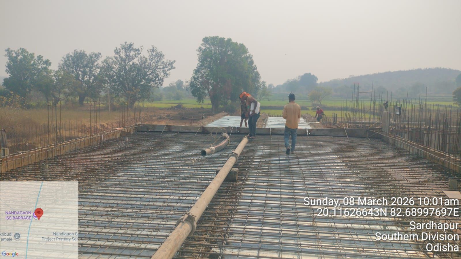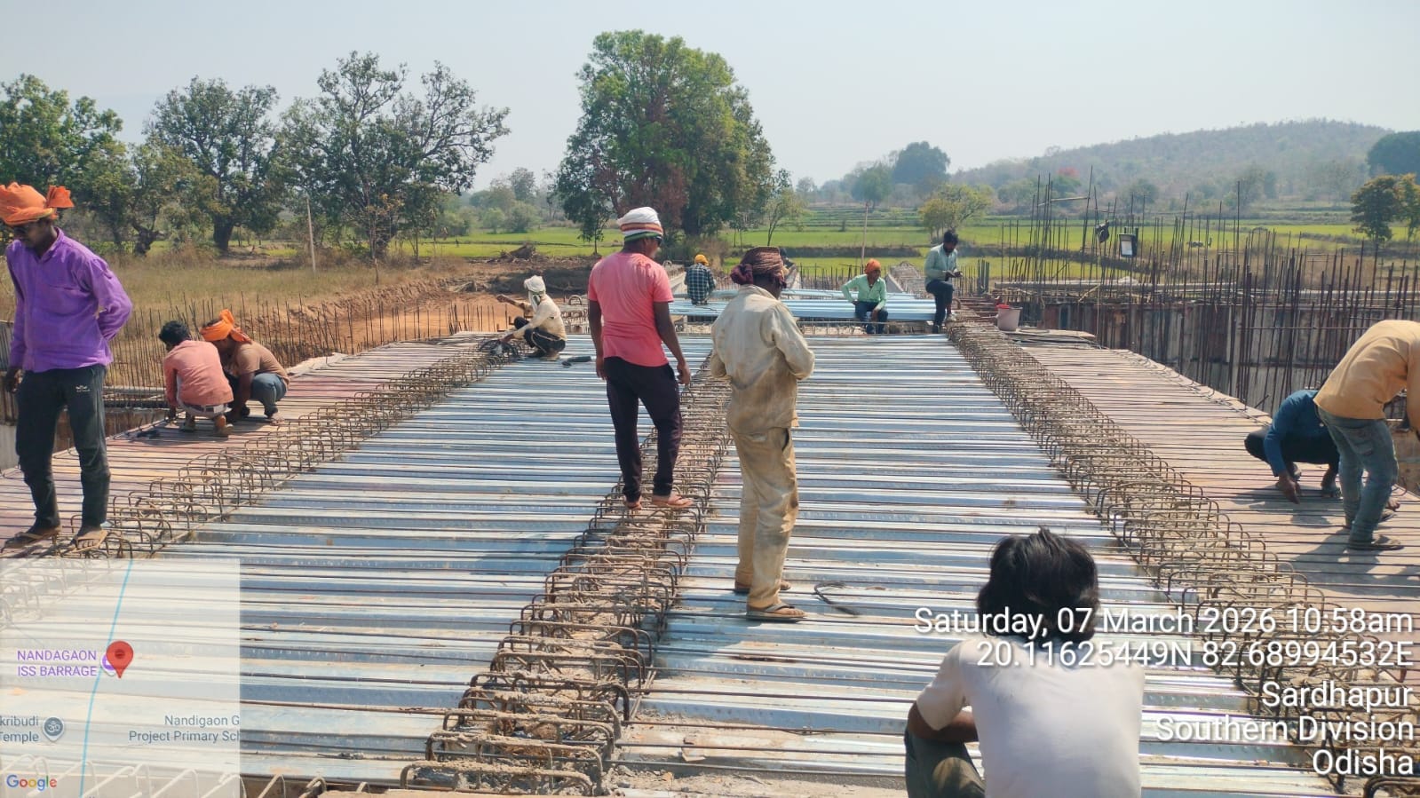 • 1). Site visit of ISS Nandagaon by QAC,Expert,SHEEof PMC and SDO &JE ISS Nandgaon in presence of PM,EPC agency,Site Engineers of PMC and site Engineer of EPC Agency, ISS Nandagaon. Found the area in binding, placing of reinforcements works including shuttering at RCC Deck slab of span-13 at undersluice bay-3 of block-2 are completed as follows :
