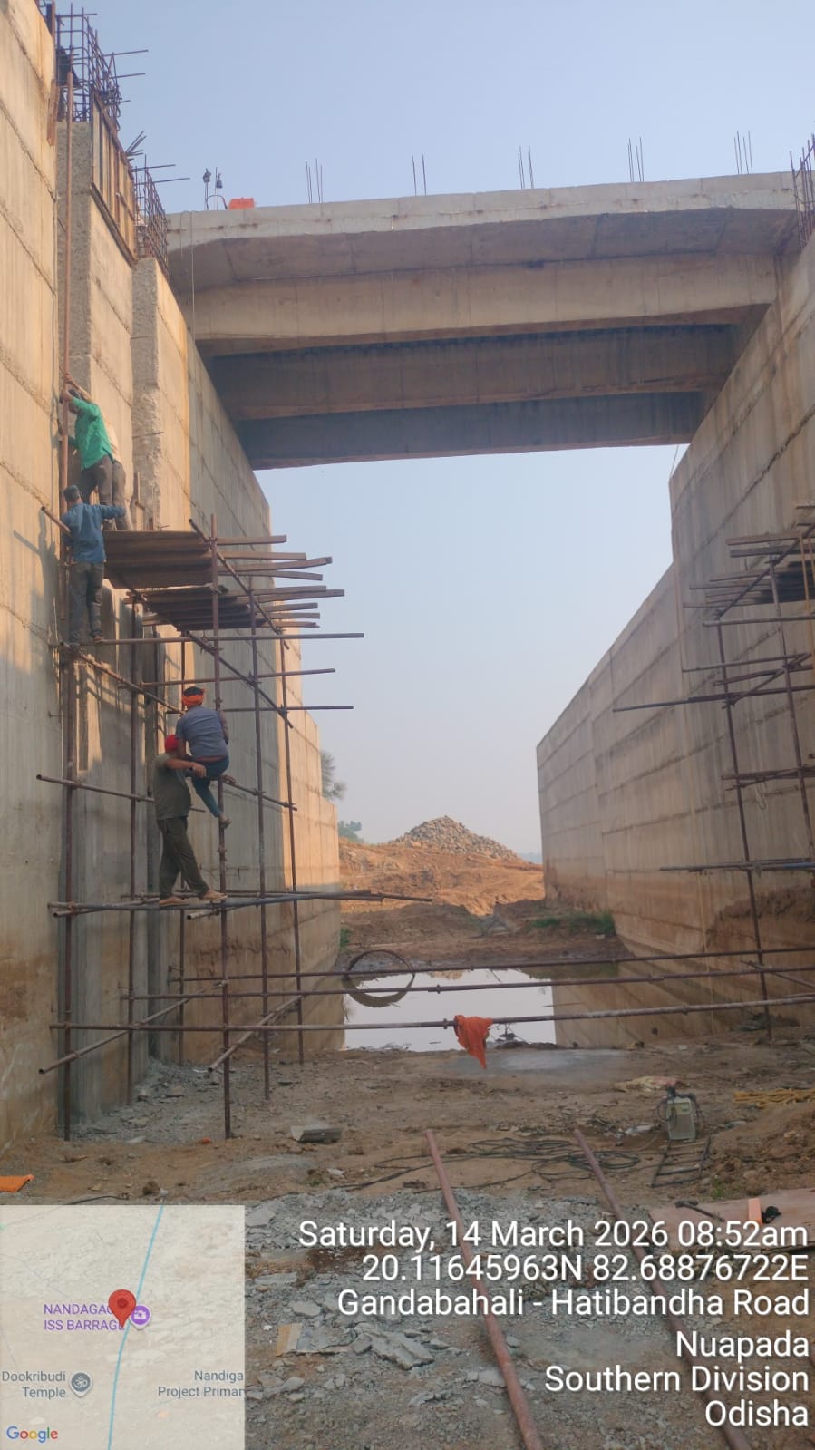 (iii) Rigid & smooth shuttering for 3nos. insitu RCC girders using good quality of shutter plates with 40mm clear cover are completed and passed by SE, KID, Bhawanipatna for placing concrete with RCC M35A20 grade on 14.03.2026