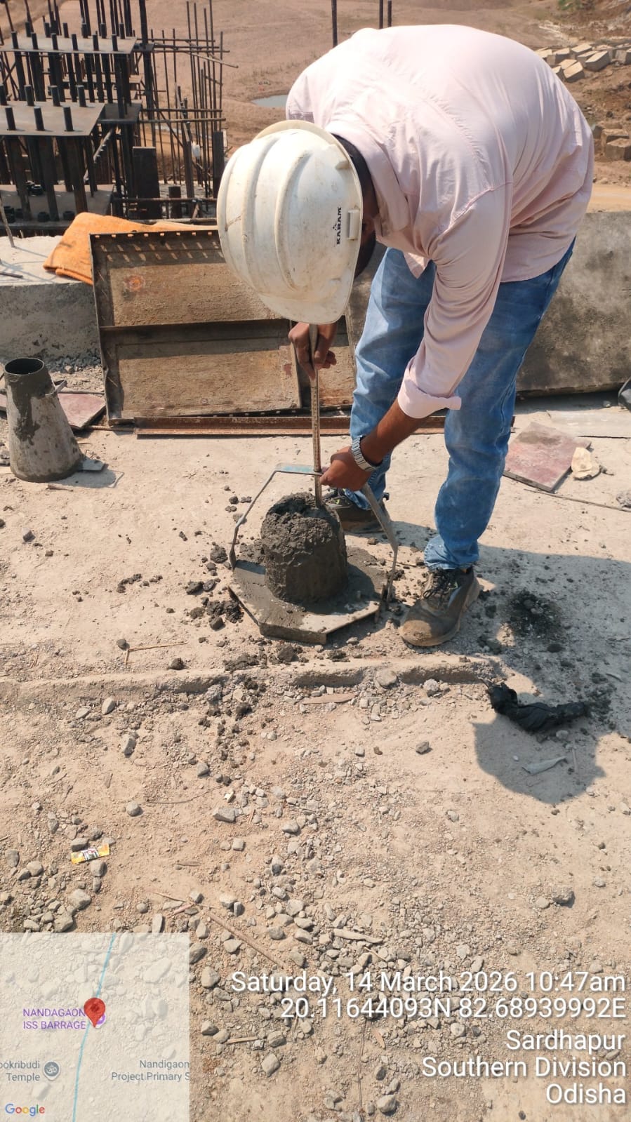 Slump testing M20A20 (Value 50 mm) of D/S Gravity floor at Pier No-8, 2nd lift done in presence of Client & PSS Team.