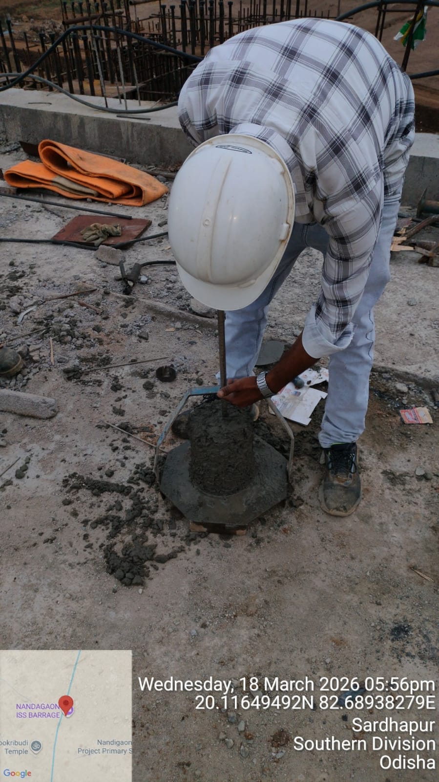 (iii).The area is cleaned properly through water pressure and passed by SE, KID, Bhawanipatna for placing with RCC M35A20 grade on 17.03.2026