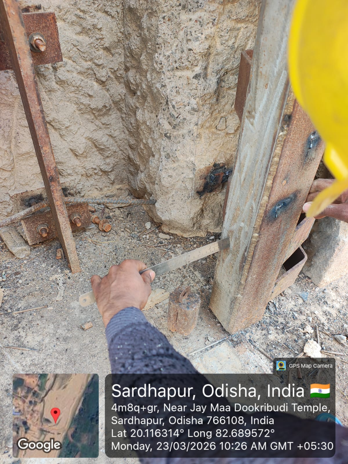 • 1. Fixing & fittings and alignment of 2nd. stage embedded parts and sufficient numbers of dowel bars at roller tracks of both stoplog & service gate grooves at undersluice bay No. 2 of Pier No. 1&2 for 10th lift have been checked and found correct by HM Expert of PMC during his site visit on dt.19.03.2026 in presence of all civil n mechanical Site Engineers of PMC and EPC Agency as per the approved Mechanical drawing & designs.
