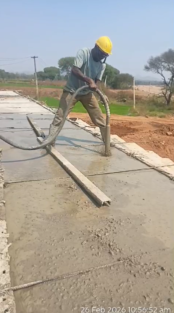 Concrete casting with RCC M35A20 grade of RCC Deck slab of Span-9 at barrage bay-8 of Block-2, using plate vibrator for proper compaction is in progress in presence PM,EPC agency,Site Engineers of PMC & EPC agency. The slump test value is 81mm on 25.02.2026