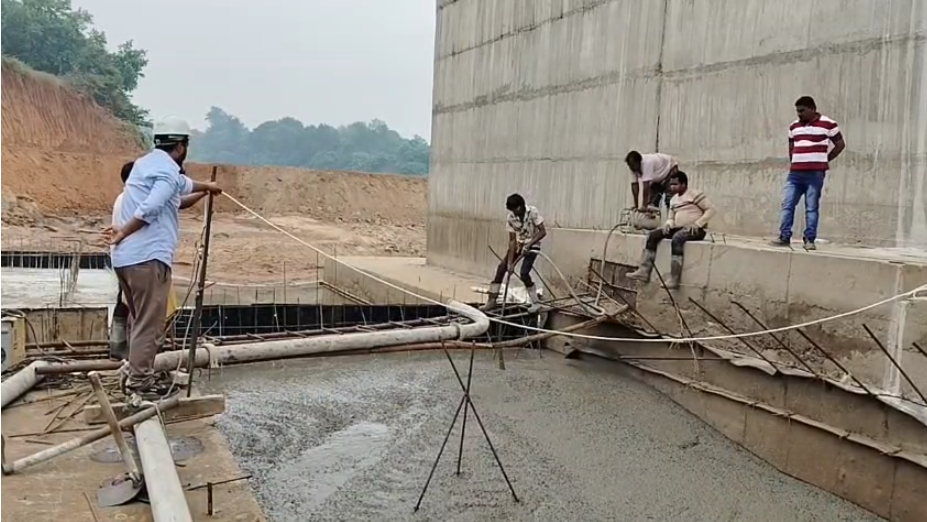 RCC of U/S flank and return wall R/S of grade M25 A20 is going on at TURI site from RL 566.55 to RL 567.60 along with proper vibration