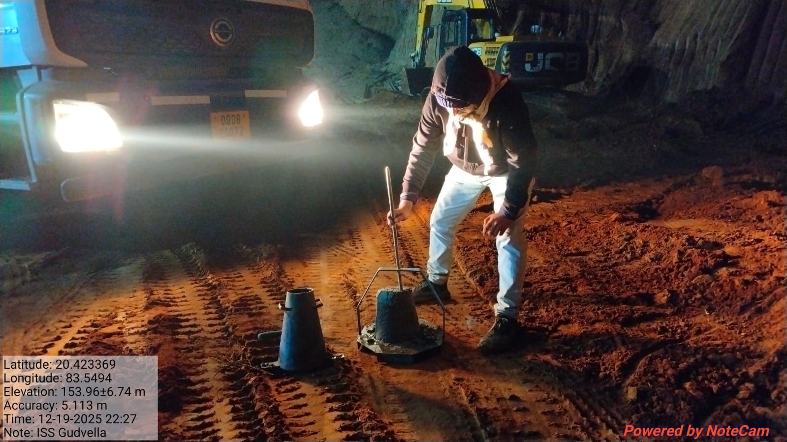 Concrete casting with PCC M20A20 grade for 1no. CC block of size 5.0x1.5x0.6m at U/S right flared out wall at sec.2-2 for 5th lift from RL-239.40m to RL-240.00m is in progress in presence of JE,KID, PM EPC agency, Site Engineers of PMC & EPC agency. Slump achieved 76mm on 19.12.2025