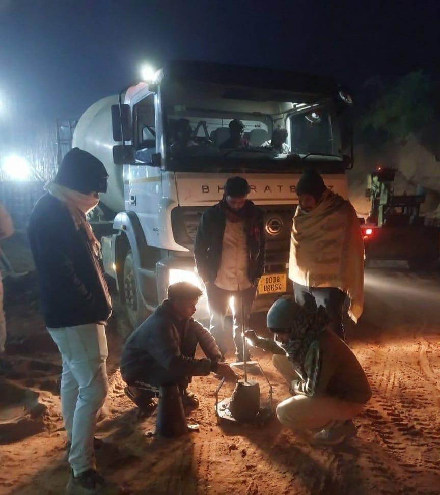 Concrete casting with M35A20 grade of stoplog & main gate grooves sill beam at bay-8 (barrage bay no.6) block-2 is in progress in presence of JE,KID, PM EPC agency, Site Engineers of PMC & EPC agency. Slump achieved 75mm on 28.12.2025