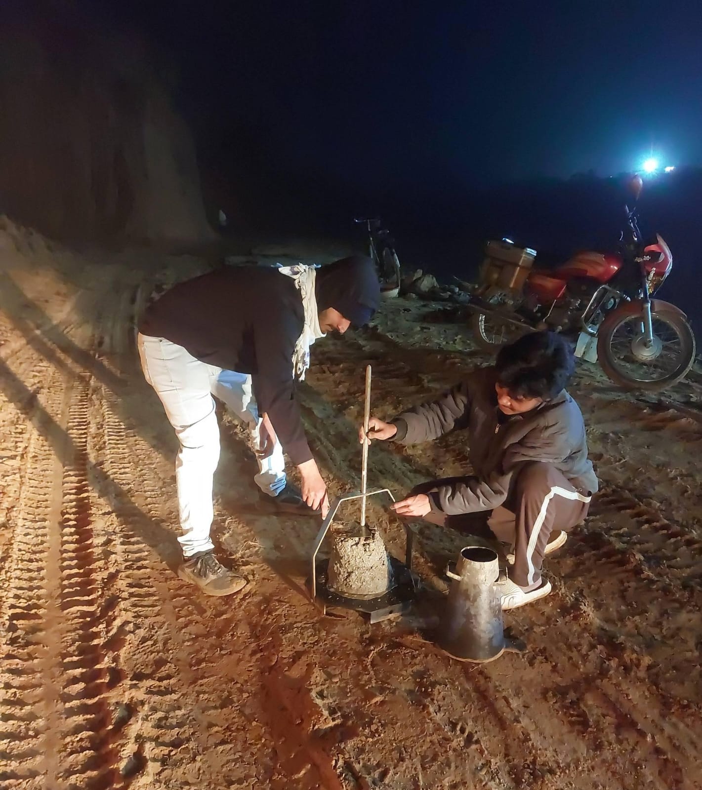 Visit of AEE, AE of Dept., QA&QC Expert along with Site engineer of PMC to the ISS site. Inspected the overall progress of work, LHS Barrage bay for double pier 5th lift concrete pouring, Fish pass area concrete pouring in progress, Test pile.02 in progress. Slump cone test and Cube cast at site in presence of AEE & AE of dept., Geologist and QA&QC Expert along with Site engineer PMC. Curing continuing at site. Cube test done at site.