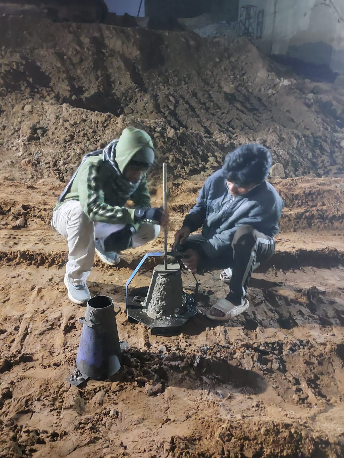 Slump testing M15A40 (Value 45 mm) of U/S Flared out wall, 3rd lift at Block No-5 done in presence of Client & PSS Team.