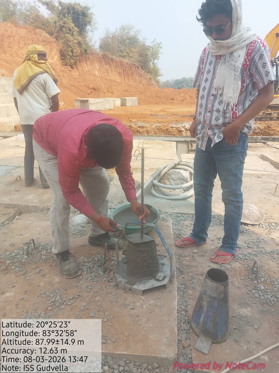 Cast of concrete PCC M20A20 grade at u/s curtain wall of grade M20A20 from RL 147.70 m to 148.20 m is completed in the presence of Dept JE, site engineer of PMC and agency. The slump test value is found 74mm on 08.03.2026