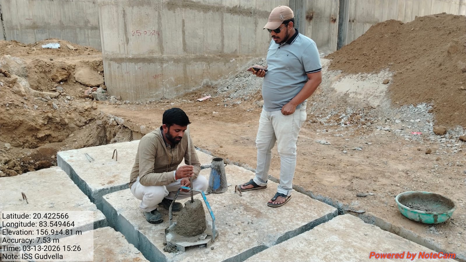 Slump testing M25A20 (Value 85 mm) of Flared Cut-off wall at Block No-5 done in presence of Client & PSS Team.