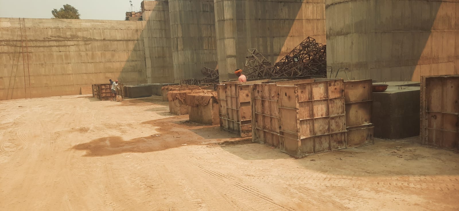 De-Shuttering of RHS Divide wall, 3rd lift slope portion is under progress.