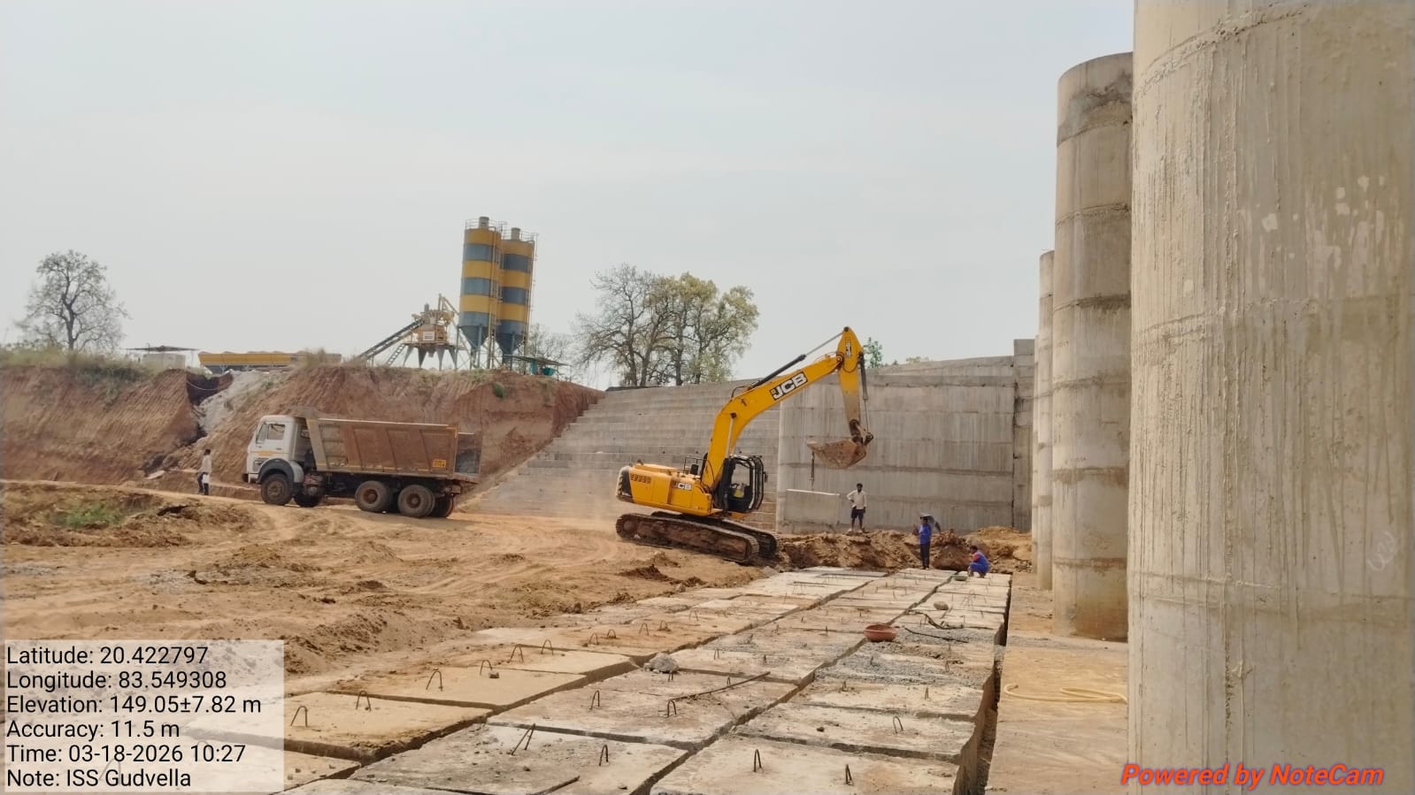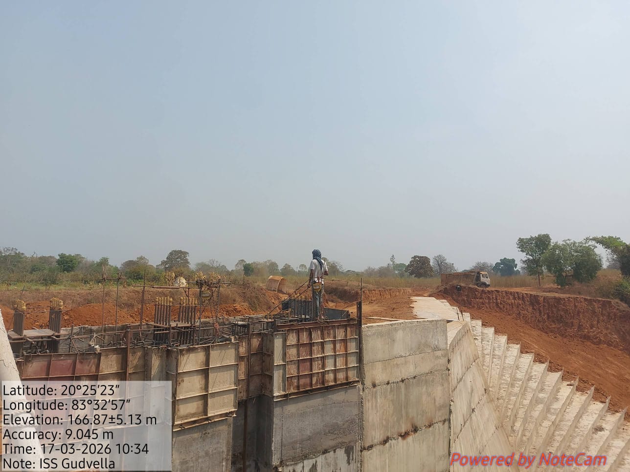 Concrete casting with PCC M15A40 grade at D/S curtain wall of 1.0m ht. and 1.0m width from RL-232.50m to RL-233.50m is in progress in presence of PM EPC agency Site Engineers of PMC & EPC agency. The slump test value is 76mm on 17.03.2026