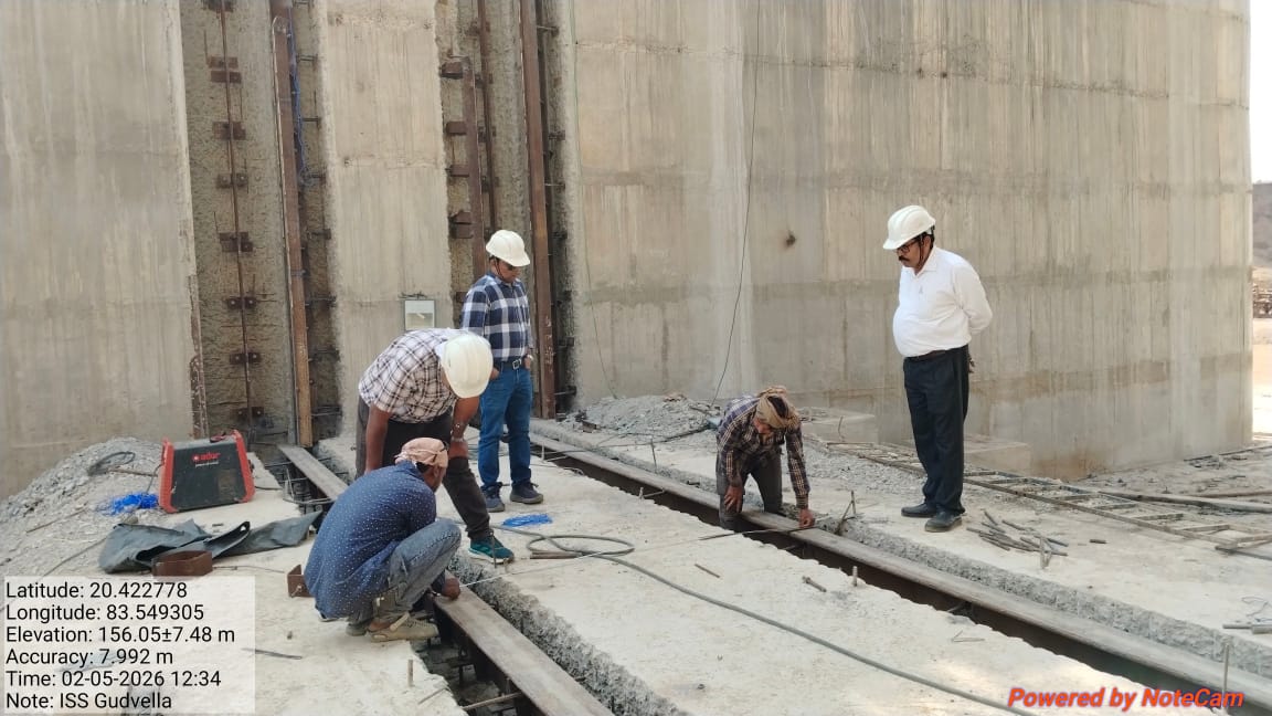 • 2. Fixing & fittings and alignment of 2nd. stage embedded parts and sufficient numbers of dowel bars at roller tracks of both stoplog & service gate grooves at bay No.7 of Pier No. 6&7 for 7th lift has been checked and found correct by HM Expert of PMC during his site visit on dt.02.02.2026 in presence of all civil n mechanical Site Engineers of PMC and EPC Agency as per the approved Mechanical drawing & designs.